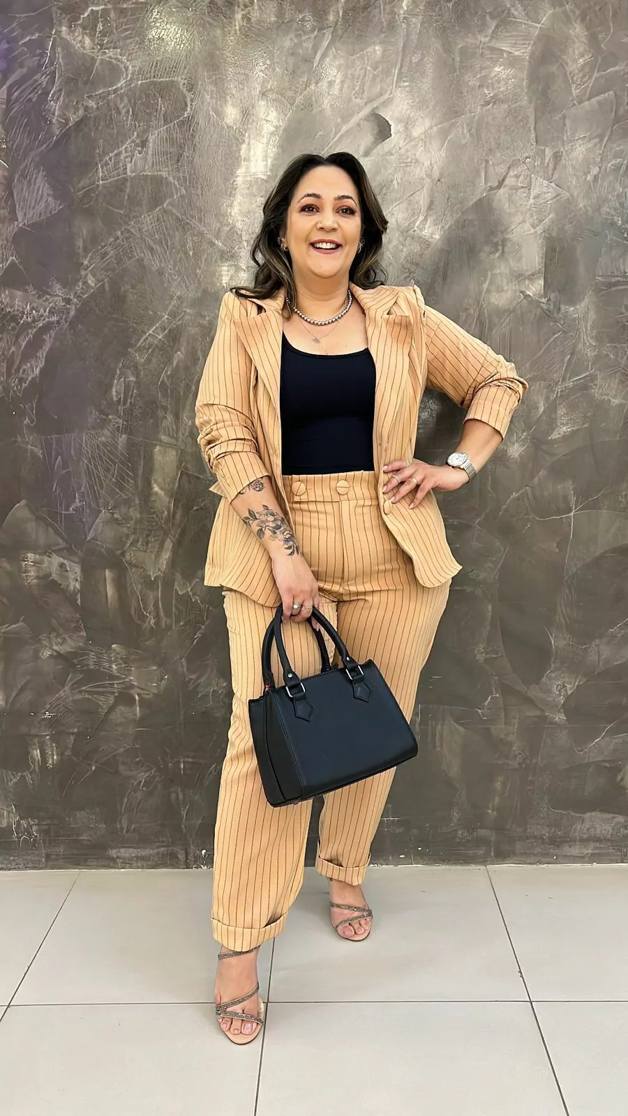 Blazer Gregory em Alfaiataria Modelo Risca de Giz com Botão Encapado | Thays Balla