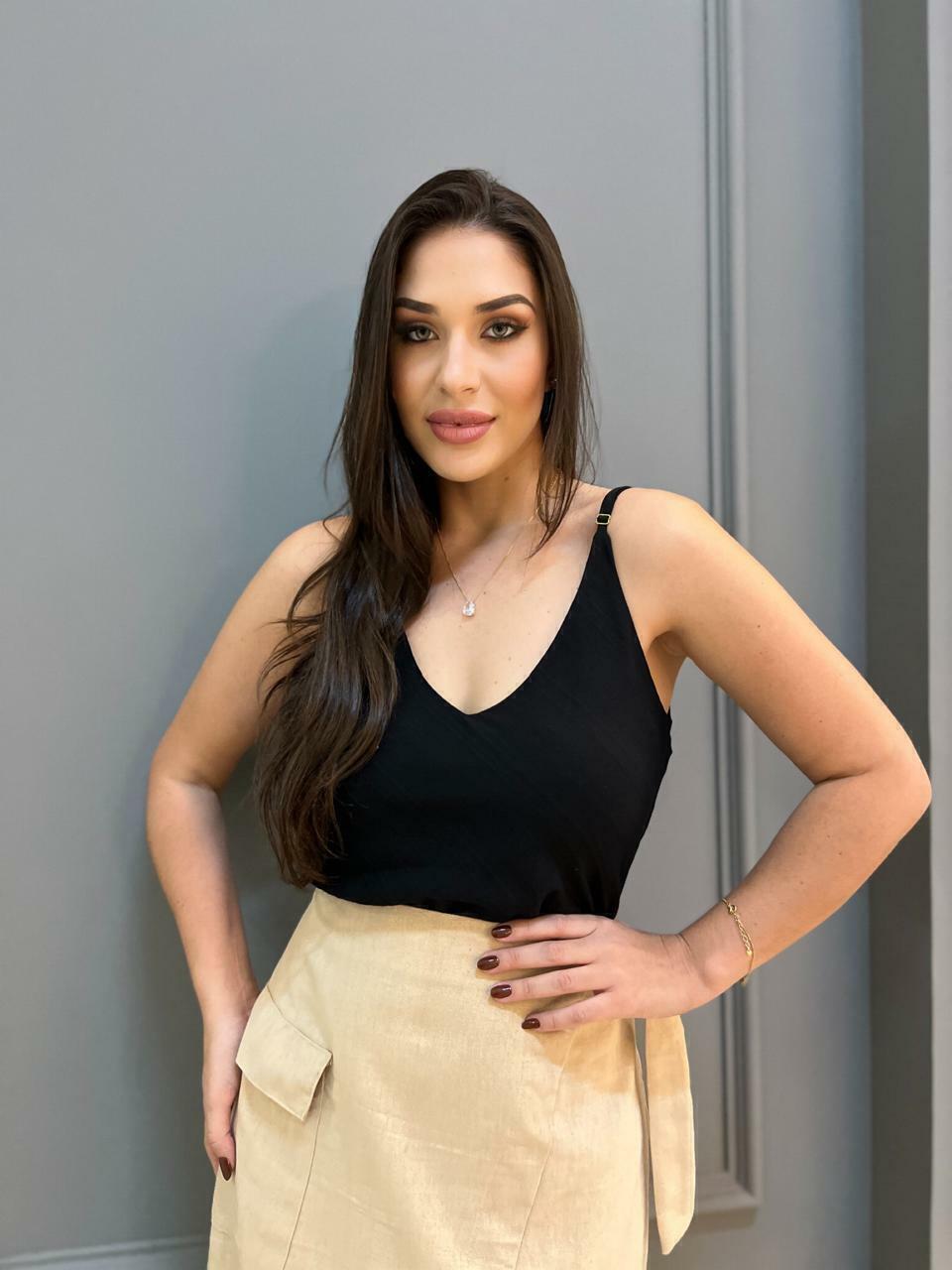 Blusa Katya Regata em Viscocrepe com Alça Ajustável e Decote em V | Thays Balla