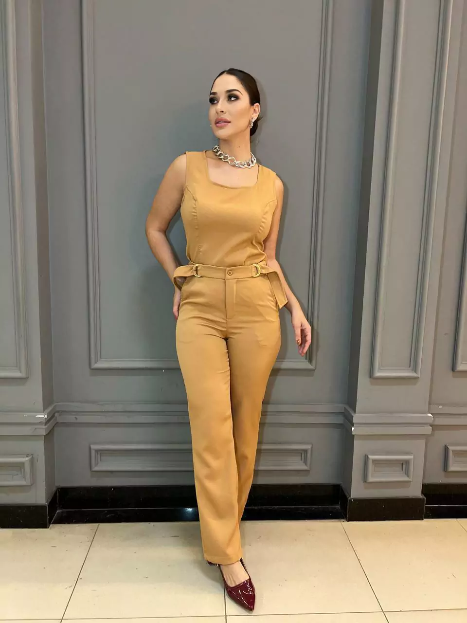 A Calça Filipinas Flare | Thays Balla oferece um toque de elegância e sofisticação com seu design em alfaiataria e flare, feito em tecido de alta qualidade com 95% poliéster e 5% elastano. O detalhe do cinto dourado e o bolso lateral proporcionam um visual moderno e prático, perfeito para quem busca estilo e conforto.